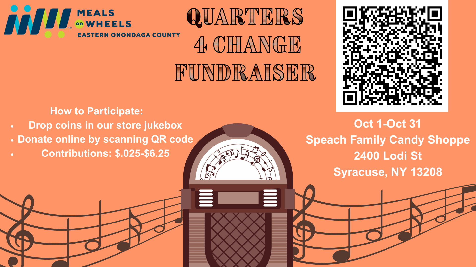 Each month a different non-profit will be chosen by Speach Family Candy Shoppe to receive the benefits of their new Rock-ola 45 Bubbler Jukebox. For 25¢ customers can make a selection from 100 new and vintage 45 rpm vinyl records, enjoy the music as they browse the store, and also support a local non-profit that will receive 100% of all the proceeds from the jukebox. Larger donations can also be made should any customer want to donate more than a quarter at a time. This month Meals on Wheels of EOC is the chosen charity!